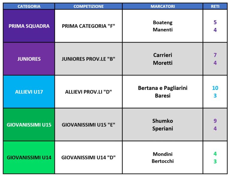NUOVA COMPAGINE A.S. 2025/2026PRIMA CATEGORIA RISULTATI WEEKEND22 & 23 NOVEMBRE Un altro risultato utile per la Prima SquadraRaggiunto il 4° posto in classifica CLASSIFICA MARCATORI Al 24/11/2025