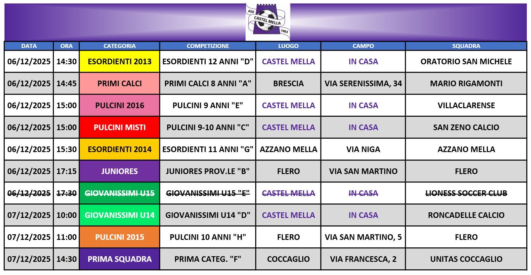 NUOVA COMPAGINE A.S. 2025/2026PRIMA CATEGORIA PROGRAMMA WEEKEND6 & 7 DICEMBRE - CLASSIFICA MARCATORI Al 1/12/2025