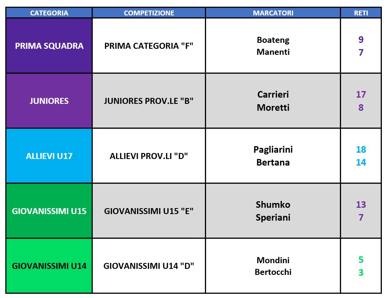 CLASSIFICA MARCATORI A.S. 2025/26